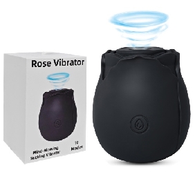 10-Speed Black Color Silicone Clitoral Sucking Rose with Thrusting Vibrator.