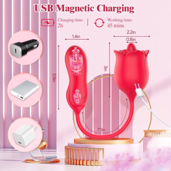 ❀【10 Rose Tongue Licking + Vibrating Modes】This adult sex toy has a rose-shaped head with 10 licking and vibrating modes. The flexible, soft tongue wiggles and vibrates internally to simulate oral sex-like sensations. Our clitoral vibrator is designed to excite the user’s deep-seated sexual desire for maximum pleasure.