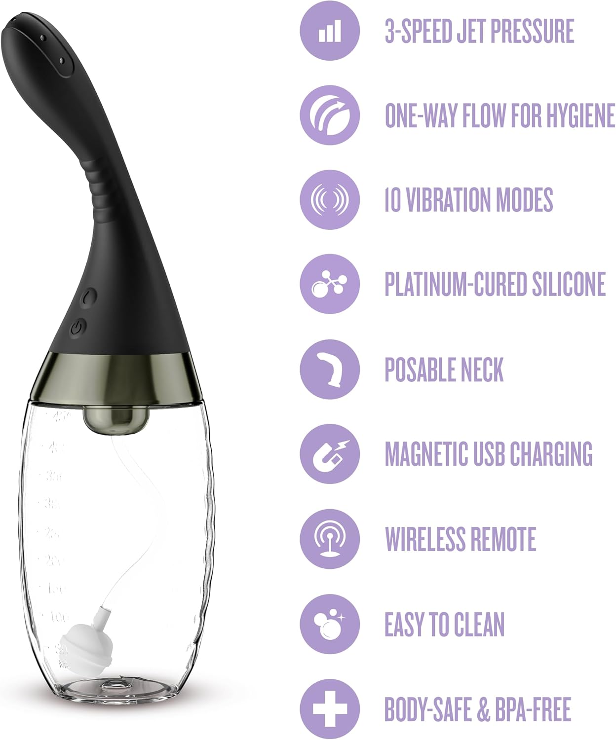 The Anal Adventures Aqua Jet is your perfect companion for a fresh, spa-like cleanse. Featuring a customizable 3-speed jet pressure system with 5 spouts, you can tailor your routine for a thorough and comfortable wash. The one-way flow design ensures a hygienic rinse, while 10 vibration modes promote increased blood flow, relaxation, and a more effective cleansing experience. Made with premium platinum-cured silicone, the posable neck offers smooth comfort and gentle positioning, enhancing every session. With its easy-to-clean, waterproof design, and magnetic USB charging, the Aqua Jet ensures every cleanse is not only effortless but also a refreshing and satisfying adventure.
