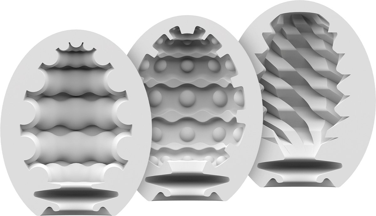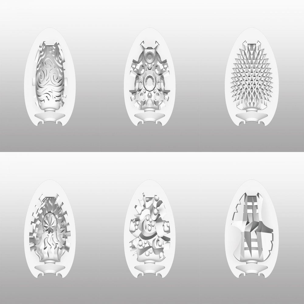 Different Strokes from Different Yolks! The TENGA EGG Series may look small, but their super-stretchable material can fit men of all sizes! The external designs of each EGG reflect the internal details within them! With a total of 6 eggs to choose from, you are sure to find a perfect match! This Variety 6 Pack contains 1 each of the following egg styles: Thunder, Crater, Misty, Cloudy, Shiny, Surfer.