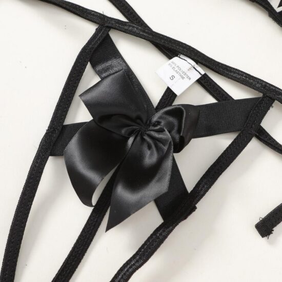 - Sexy slight stretch bow hollow two-piece set(with hand ring)