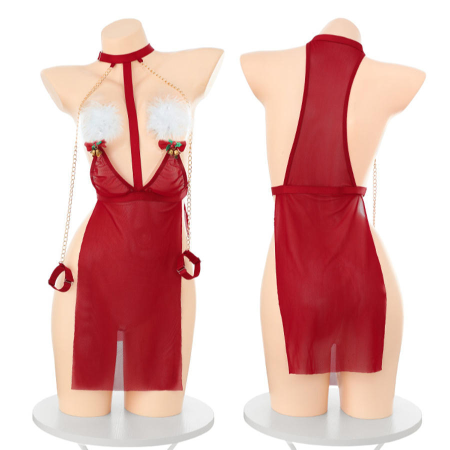 Sexy slight stretch christmas metal chain babydoll(with nipple covers&thong)