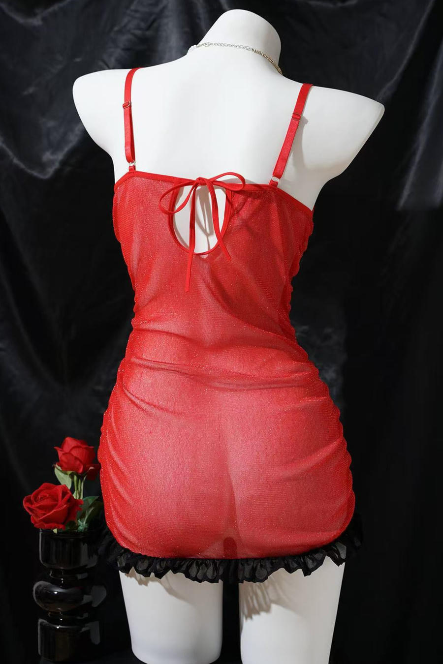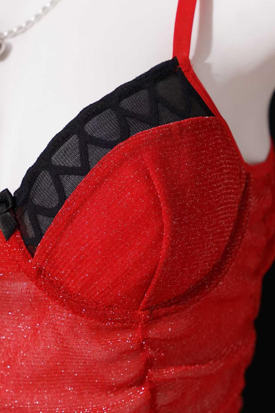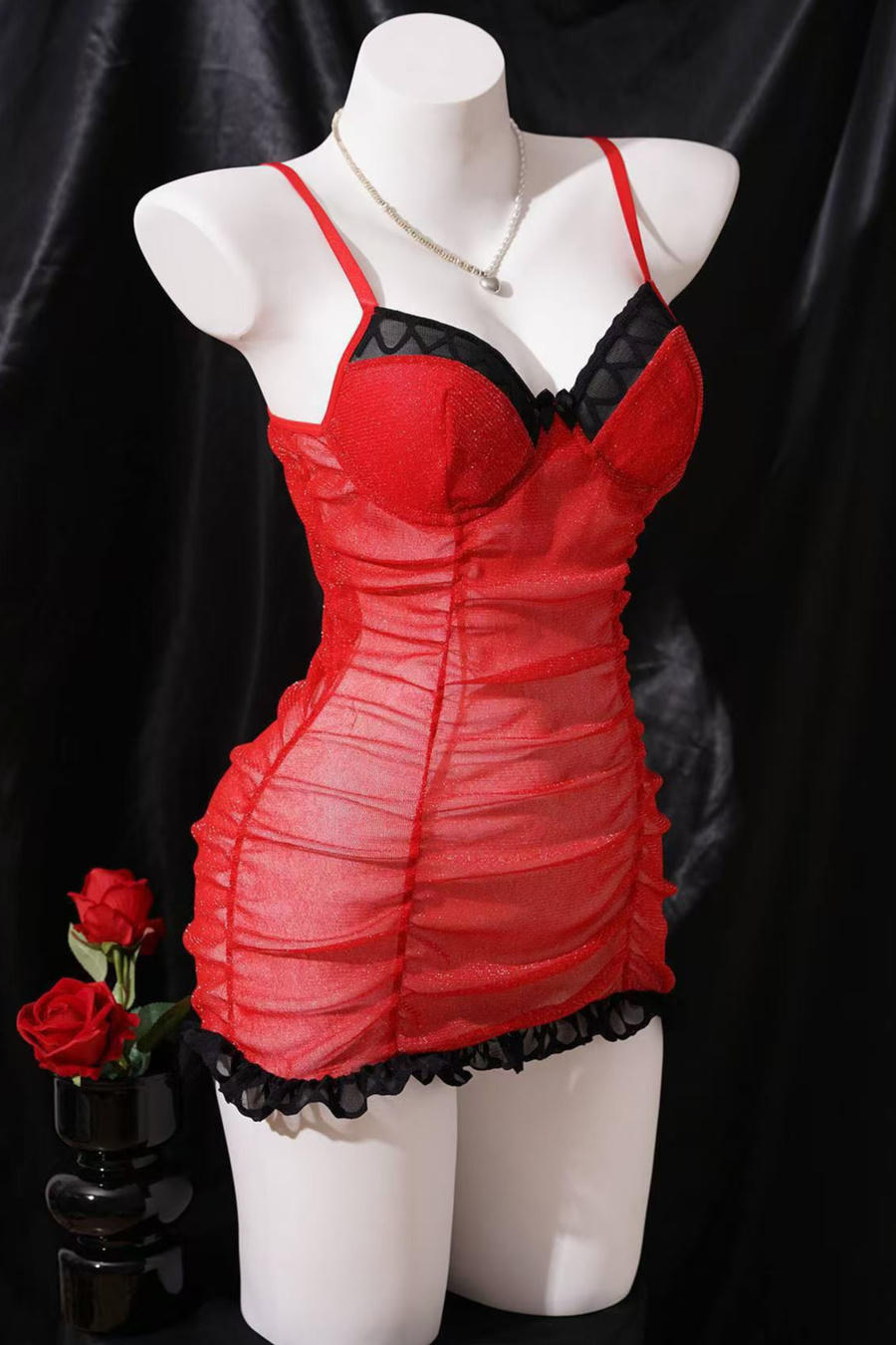 Sexy slight stretch contrast color mesh babydoll(with underwire)